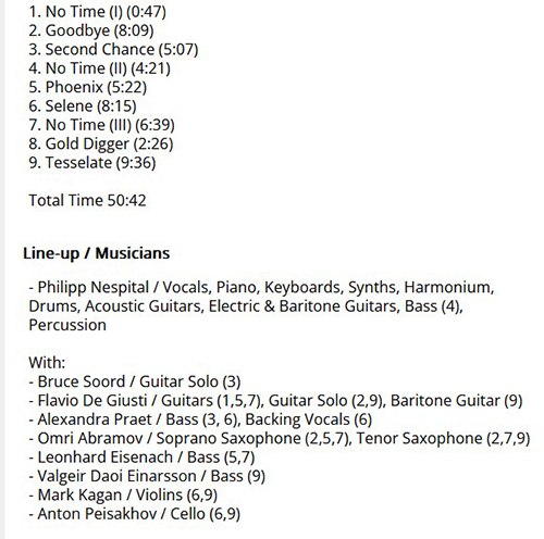 Attachment 2353 I listened to Philipp Nespital for the first time in 2017 with his album THE OCEAN and this multi-instrumentalist had caught my attention and I decided to follow his subsequent albums which would certainly give me some excellent music.... after many years Philipp Nespital comes out with this new album and proves once again that he can write music of various genres while always maintaining an excellent quality. ABOUT SMALLTAPE ...SMALLTAPE From Progarchives.com smalltape biography SMALLTAPE was formed as the solo project by a musician / sound designer Philipp NESPITAL. He always works in his studio in collaboration with some guest musicians such as Otis Sandsjö (tenor saxophone, ex-Lucia Cadotsch Trio), Christopher Zitterbart (guitars, ex-Mt. Amber) or Stephan Pankow (guitars, ex-Toxic Smile), and on stage with Manuel Humpf (drums), Alexandra Praet (bass, keyboards, backing voices), and Flavio De Giusti (guitars, backing voices). His first album "Circles" has been released in 2011, and his second one "The Ocean" in 2017. his third album in 2021: THE HUNGRY HEART and now in 2025 his fourth album TANGRAM Attachment 2352 These are my best tracks of 2025 Track Title-Group or Artist-Album King Kong-AMPLIFIER-Gargantuan Night Terror-DREAM THEATER-Parasomnia Panopticon -GHOST OF THE MACHINE-Empires Must Fall The End of Days Suite: 1. The City Lights at Twilight -THE JOHN IRVINE BAND-HERE COME THE ROBOTS! Lucifer, Bringer of Light -MOTORSPSYCHO-MOTORSPSYCHO Marvelous World-CHEAT THE PROPHET-Redemption The-Shoreline-EYE 2 EYE-Lost Horizon End of the Road-KARMAKANIC-Transmutation These Hands That Build-BLACK NARCISSUS-There Lingers One Who's Long Forgotten Objects Outlive Us-STEVEN WILSON-The Overview Far From Here-IQ-Dominion Sleeping on a Cloud-LET SEE THIN-Machine Called Life Gone-BJØRN RIIS-Fimbulvinter Deep Water Suite IX-COSMIC CATHEDRAL- Deep Water Another Holy Grail-PATTERN-SEEKING ANIMALS-Friend Of All Creatures Seraphina Moon-CEN-PROJEKT-Carnival Of Lost Souls Demain a l’aube-GERALD MASSOIS- Demain a l’aube -Considerations-THE FLOWER KINGS-Love -The Passing-JACOB ROBERGE-The Passing -Ordinary Gods-KARIBOW-PanTerrania -Division Warning-COSMOGRAF-The Orphan Epoch -De Tre Gratier-Lars Fredrik Froislie-Gamle Mester -Terraforming-AMBIENT DEN-Ambient Den -Fall Away-DAVE BAINBRIDGE-On The Edge (Of What Could Be) -Remnants of Memories-DORACOR-Unexpected Intersections -Insurrection-CRAYON PHASE-Synthetic Mind -The Book of Hours Pt I-AGROPELTER-The Book of Hours -Voice of God-ATOMIC TIME-Subsounds -Atomic -STEPHAN THELEN-WORLDS IN COLLISION -The Prophecy -LUNATIC SOUL-THE WORLD UNDER UNSUN -Aragorn (Extended Version) (Bonus Track) -YAK-THE PINK MAN & THE BISHOP -Everywhere I Rest My Head the Ground is Shifting -The Black Cat's Eye-DECRYPTING DREAMS OF WEIRD ANIMALS AND STRANGE OBJECTS -Last Letter Home -HOOFFOOT-PHANTOM LIMB -Tesselate-SMALLTAPE-TANGRAM Attachment 2354 Attachment 2355 I like to give more prominence to this artist who deserves more attention by publishing his album presentation Crowdfunding Tangram -SMALLTAPE https://www.youtube.com/watch?v=dOScHpgJxzk Tesselate-SMALLTAPE https://smalltape.bandcamp.com/track/tesselate GOOD LISTENING |