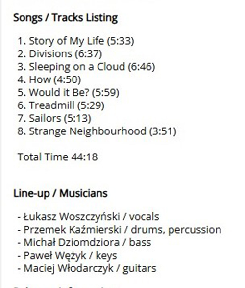 Attachment 2242 ABOUT LET SEE THIN ..LET SEE THIN. From Official Website BIO We are a Polish music band established in 2018 in the city of Lodz, playing rock/art rock, spiced up with electronic accents. In our music, we try not to hold on to any specific music genre – we simply play what we feel comfortable with, connecting our classic rock foundations with some new ideas and influences. Since the first official performance in front of a wider audience, which took place at the beginning of 2019, we have been performing throughout the country as a part of all kinds of festivals, outdoor events and club stages. During the pandemic we focused on recordings in the studio, which resulted in the release of the debut album entitled „2 Years 2 Late”, which includes eight original compositions. In April 2021, the album was released in the physical form (CD) by the Irish record label Progressive Gears Records and was very positively reviewed by music journalists and critics, not only in Poland, but also in many European countries. Premiere of our second studio album „MACHINE CALLED LIFE” took place on the 15th of January 2025. „MACHINE CALLED LIFE” is a collection of eight stories about life, transience and how our view of the world has changed over time. In the musical layer, we remain faithful to our original guideline, which can be described in one simple word – „OPENNESS”. Open to experiments, searching and combining different genres, we flow freely. Listen and flow with us… MEMBERS Łukasz Woszczyński (vocals) Przemek Kaźmierski (drums/percussion) Michał Dziomdziora (bass) Paweł Wężyk (keys) Maciej Włodarczyk (electric guitar) Attachment 2241 Hi friends 2025 Work in Progress..ive These are my best tracks of 2025 Track Title-Group or Artist-Album King Kong-AMPLIFIER-Gargantuan Night Terror-DREAM THEATER-Parasomnia Panopticon -GHOST OF THE MACHINE-Empires Must Fall The End of Days Suite: 1. The City Lights at Twilight -THE JOHN IRVINE BAND-HERE COME THE ROBOTS! Lucifer, Bringer of Light -MOTORSPSYCHO-MOTORSPSYCHO Marvelous World-CHEAT THE PROPHET-Redemption The-Shoreline-EYE 2 EYE-Lost Horizon End of the Road-KARMAKANIC-Transmutation These Hands That Build-BLACK NARCISSUS-There Lingers One Who's Long Forgotten Objects Outlive Us-STEVEN WILSON-The Overview Far From Here-IQ-Dominion Sleeping on a Cloud-LET SEE THIN-Machine Called Life Attachment 2243 Attachment 2244 Sleeping on a Cloud-LET SEE THIN https://www.youtube.com/watch?v=tM0m9oa1h8U GOOD LISTENING |