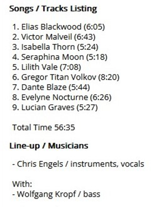 Attachment 2259 ABOUT CEN-PROJEKT ..CEN-PROJEKT from progarchives.com and official website Cen-ProjekT biography From Germany, this is the project of multi-instrumentalist Chirs ENGELS and a trio with bass player Wolfgang KROPF and drummer Marius BOFFGEN. The lyrics are inspired by poems. Chris has also released many studio albums under his name, but these are more on the heavier side. The music here in his 9 albums with the band has some influences from the 70's symphonic prog and bands like GENESIS and PINK FLOYD. I am happy to release the new concept album "The Story of Enja" today :-) I assume it will be released on bandcamp first and then on all the usual platforms in the next few days. This album was important to me. It might be a bit different from the last albums. Sophie Brown and friends are also on it :-) I would like to thank Wolfgang Kropf, who recorded the bass and was a great help with the mixing. Have fun! Dear music friends, As of today, I am withdrawing my music with the projects "Engels" and "Cen-ProjekT" from streaming services. In the future, a new album will be available for one week on platforms like Spotify and will then be exclusively available on Bandcamp. Singles will still be accessible on streaming services. Naturally, I will provide selected journalists and online radio stations with the albums to make the music available to a wider audience. Creating, composing, and recording music is an enormous effort. While Spotify listeners can access a vast library of music for a monthly fee, musicians receive only €0.003 for each stream. This practice allows very few artists to make a living from their music. I produce Neo-Prog-Rock, a non-commercial niche with an audience that still appreciates and enjoys music. I am proud of each of you who is part of this community. Bandcamp will also serve as a platform for communication, and I look forward to your feedback. Thank you for your understanding and support! Best regards, Attachment 2258 Hi friends 2025 Work in Progress..ive These are my best tracks of 2025 Track Title-Group or Artist-Album King Kong-AMPLIFIER-Gargantuan Night Terror-DREAM THEATER-Parasomnia Panopticon -GHOST OF THE MACHINE-Empires Must Fall The End of Days Suite: 1. The City Lights at Twilight -THE JOHN IRVINE BAND-HERE COME THE ROBOTS! Lucifer, Bringer of Light -MOTORSPSYCHO-MOTORSPSYCHO Marvelous World-CHEAT THE PROPHET-Redemption The-Shoreline-EYE 2 EYE-Lost Horizon End of the Road-KARMAKANIC-Transmutation These Hands That Build-BLACK NARCISSUS-There Lingers One Who's Long Forgotten Objects Outlive Us-STEVEN WILSON-The Overview Far From Here-IQ-Dominion Sleeping on a Cloud-LET SEE THIN-Machine Called Life Gone-BJØRN RIIS-Fimbulvinter Deep Water Suite IX-COSMIC CATHEDRAL- Deep Water Another Holy Grail-PATTERN-SEEKING ANIMALS-Friend Of All Creatures Seraphina Moon-CEN-PROJEKT-Carnival Of Lost Souls Attachment 2260 Attachment 2261 Seraphina Moon-CEN-PROJEKT https://cen-projekt.bandcamp.com/track/seraphina-moon GOOD LISTENING |