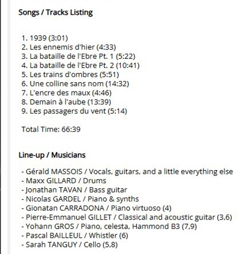Attachment 2263 ABOUT GERALD MASSOIS ..GERALD MASSOIS from official website biography gerald massois GERALD MASSOIS is a multi-talented French musician, composer and arranger specializing in symphonic progressive rock. Drawing his inspiration from a variety of musical styles (Ange, Peter Gabriel, Dream Theater, Ennio Morricone...), he released in 2018 his first album «Le vol erratique d'un papillon» based on the attacks of the Bataclan. Available exclusively in digital version (bandcamp, artist’s website, streaming platforms), this self-produced opus was written as the first piece of a musical trilogy. At that time, GERALD MASSOIS played all instruments except the drums of his long-time comrade Maxx GILLARD. To celebrate this album, a band is preparing to play at the Prog'Sud festival in May 2019, with JONATHAN TAVAN on bass and his co-producer NICOLAS GARDEL on keyboards. The same year, GERALD MASSOIS begins writing new songs for his second album. Delayed by the pandemic, this album entitled «Demain à l'aube» was released on 12/01/2024 on digital and Digipack and will be available on 01/02/2025 on streaming platforms/ Bandcamp. His music combines complex arrangements, orchestral influences and a mix of acoustic and electric instrumentation to create evocative and concept-driven compositions. Some guests are invited for this album including GIONATAN CARRADONA of PROFUSION. In addition to some orchestrations and keyboards, NICOLAS GARDEL co-orchestrates, mixes and masters the album. The third part of the trilogy is already written... Attachment 2262 These are my best tracks of 2025 Track Title-Group or Artist-Album King Kong-AMPLIFIER-Gargantuan Night Terror-DREAM THEATER-Parasomnia Panopticon -GHOST OF THE MACHINE-Empires Must Fall The End of Days Suite: 1. The City Lights at Twilight -THE JOHN IRVINE BAND-HERE COME THE ROBOTS! Lucifer, Bringer of Light -MOTORSPSYCHO-MOTORSPSYCHO Marvelous World-CHEAT THE PROPHET-Redemption The-Shoreline-EYE 2 EYE-Lost Horizon End of the Road-KARMAKANIC-Transmutation These Hands That Build-BLACK NARCISSUS-There Lingers One Who's Long Forgotten Objects Outlive Us-STEVEN WILSON-The Overview Far From Here-IQ-Dominion Sleeping on a Cloud-LET SEE THIN-Machine Called Life Gone-BJØRN RIIS-Fimbulvinter Deep Water Suite IX-COSMIC CATHEDRAL- Deep Water Another Holy Grail-PATTERN-SEEKING ANIMALS-Friend Of All Creatures Seraphina Moon-CEN-PROJEKT-Carnival Of Lost Souls Demain a l’aube-GERALD MASSOIS- Demain a l’aube Attachment 2264 Attachment 2265 Demain a l’aube-GERALD MASSOIS https://geraldmassois.bandcamp.com/track/demain-laube GOOD LISTENING |