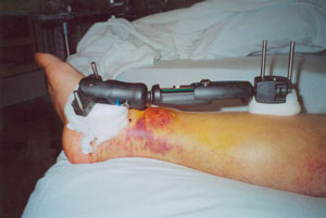 Is that the "fixator" on top of your leg? How are you coping otherwise? |